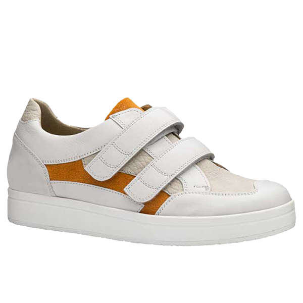 Obermaterial:Sportcalf weiß, Bantus ecru, Velour orange