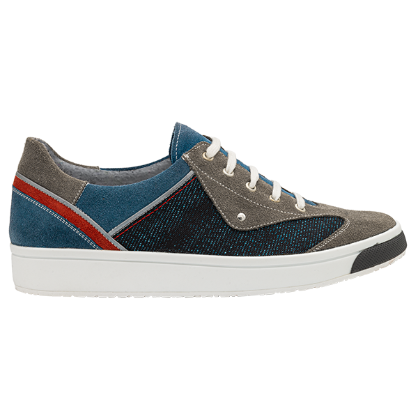 Obermaterial:Rindvelour gris, Cordura jeans, Rindvelour jeans, Velour rot