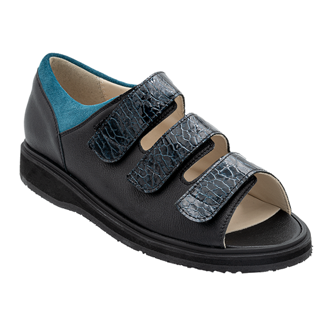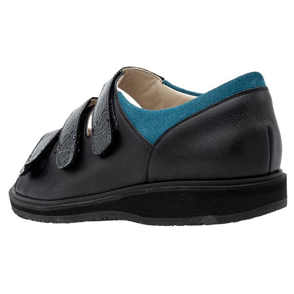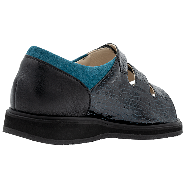 Obermaterial:Sportcalf schwarz, Vintage Lack petrol, Velour petrol